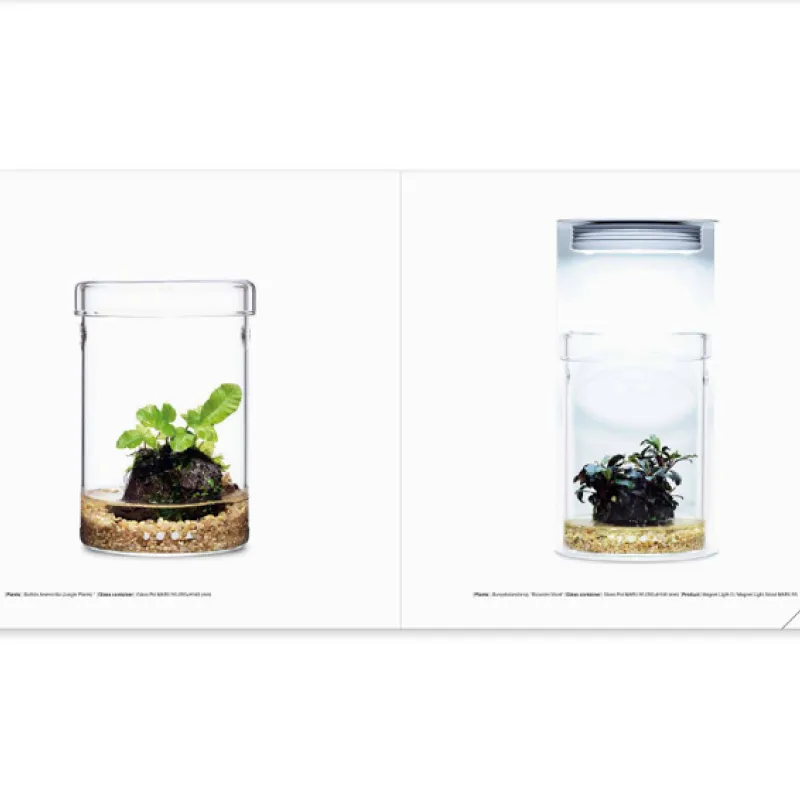 Een leuk compact fotoboekje met ADA kwaliteit foto's van een aantal kleinere aquaria en vele voorbeelden van Neo glass air en Glass pot miniscapes.