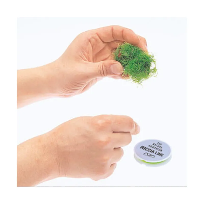 ADA Riccia Line is een speciale draad om Riccia op de stenen en het drijfhout te bevestigen. De transparant-groene kleur draad is in het aquarium nauwelijks waarneembaar. Het is ook beschikbaar om mos op stenen te bevestigen waarop dat normaal moeilijk te bevestigen is.