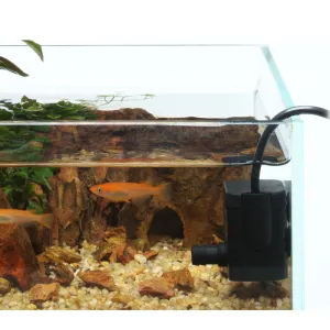 Stream pump mini is een compacte volledig dompelbare pomp voor watercirculatie in kleine aquaria of waterornamenten zoals DOOA Glass pots. Kleine aquaria hebben ook watercirculatie nodig om de plantengroei en dieren gezond te houden. Door het gebruik van de compacte (30 x 23 x 30 mm) steram pump mini is het maken van circulatie zelfs in de kleinste bakjes mogelijk. De stroming kan geregeld worden door de schuif aan de voorkant van de pomp en de zuignapjes zorgen dat het pompje makkelijk aan gladde oppervlaktes blijft hangen. De uitstroomnozzle is te verwijderen als deze niet gebruikt wordt om een slang aan te sluiten. Op de nozzle past een slang van 9mm binnenmaat.
