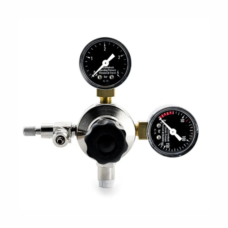 Deze professionele drukregelaar is voorzien van een drukmeter voor de flesdruk en een voor de ingestelde werkdruk. Met de nauwkeurige fijnregeling stelt u makkelijk het aantal bellen CO2 af voor een goede dosering. De drukregelaar heeft een aansluiting die past op de standaard hervulbare CO2 flessen met aansluiting W21,8 x 1/14".