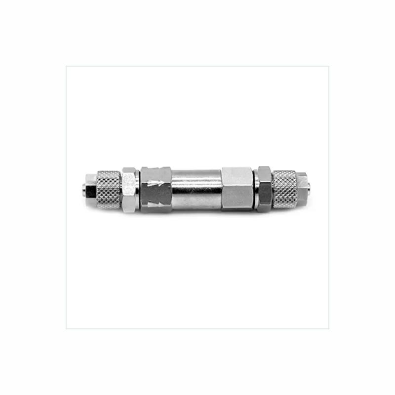 Professioneel metalen terugslagventiel. Zorgt ervoor dat er geen water kan teruglopen vanuit het aquarium in uw CO2 systeem. Door de borgmoeren voor de slangbevestiging zitten de slangen stevig bevestigd.