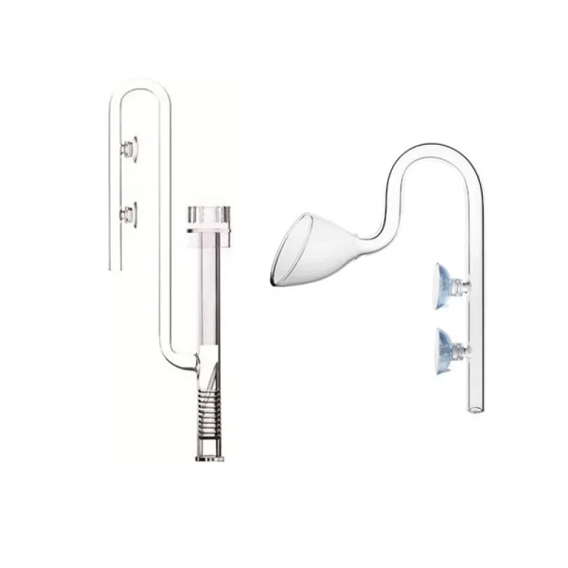 Glazen oppervlakte afzuiging en lilypipe set verkrijgbaar voor 12/16 slang en 16/22 slang. Zeker bij een open aquarium is het mooier om glas te gebruiken omdat dat veel minder zichtbaar is dan de klassieke kunststof aansluitingen. De oppervlakteafzuiger zorgt ervoor dat het wateroppervlak effectief wordt gereinigd van vervuiling en de lily pipe zorgt voor een optimale circulatie, zelfs met een filter met flinke overcapaciteit.