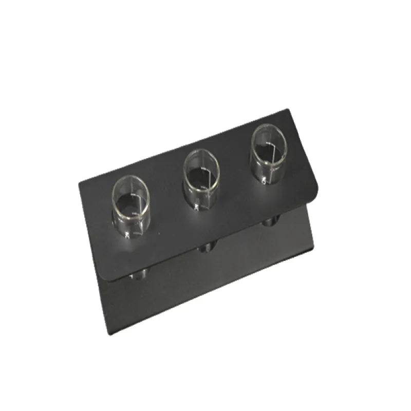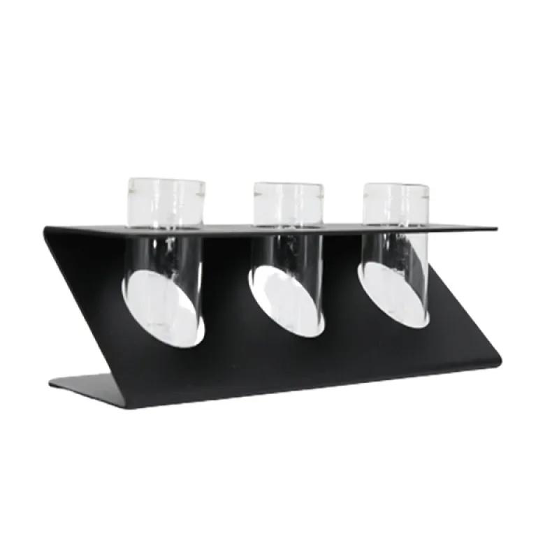 Kalibratiestation met 3 glazen meetpotjes. Ideaal om zonder omvallende potjes uw pH electrode te kalibreren. De houder is gemaakt van gepoedercoat metaal en staat door zijn gewicht stevig. De meetpotjes zijn van glas en dus altijd goed schoon te maken.