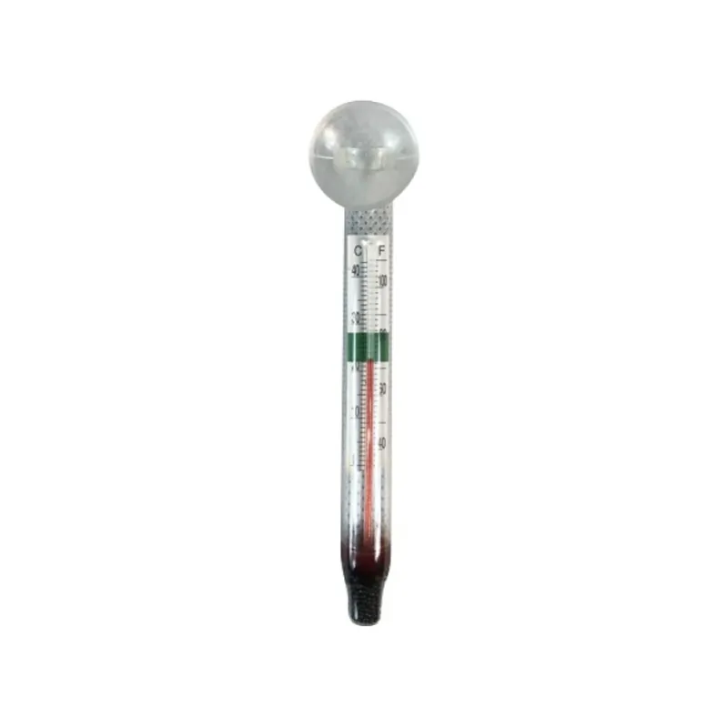 De standaard glas thermometer wordt geleverd inclusief zuignap om de meter tegen de binnenzijde van de aquariumruit te plakken.