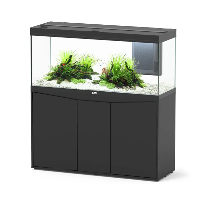Hier is de aquariumoplossing die functionaliteit combineert met exclusief design en edele materialen. Minimalistisch en modern design in een hoogwaardig aluminium profiel passend bij een eigentijdse houten kast met zachte lijnen.