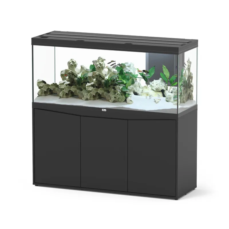 Hier is de aquariumoplossing die functionaliteit combineert met exclusief design en edele materialen. Minimalistisch en modern design in een hoogwaardig aluminium profiel passend bij een eigentijdse houten kast met zachte lijnen.