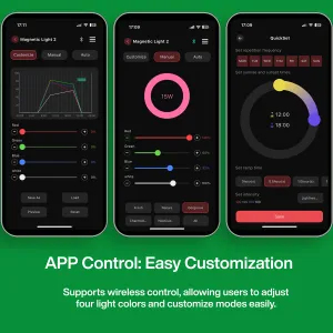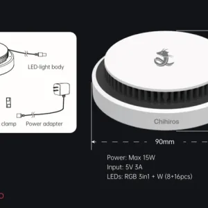 Een belangrijk kenmerk is de instelbare kleurweergave. In totaal 24 leds – bestaande uit 8 RGB 3-in-1-leds en 16 witte leds – zorgen voor een genuanceerde lichtverdeling met een hogere helderheid dan bestaande lampen in deze serie. Met de MyChihiros-app kunnen zowel de helderheid als de individuele kleurkanalen worden aangepast. Ook tijdsafhankelijke overgangen, zoals simulaties van zonsopgang en zonsondergang, en geleidelijke dimfases kunnen direct in de app worden geprogrammeerd.