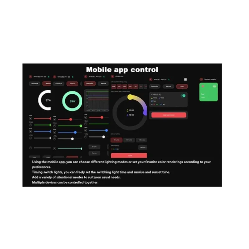 Chihiros WRGB 2 pro is de perfecte keuze voor een high-tech aquarium zelfs met de meest veeleisende planten. Met behulp van de ingebouwde bluetooth controller en de My-Chihiros App is het makkelijk om de kleuren en lichtintensiteit in te stellen. Met de sunrise en sunset functie kunt u in een paar klikken de verlichting instellen.