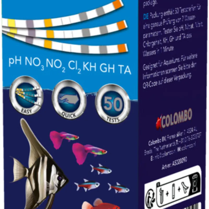 Voor een snelle meting van 6 waterwaardes. Test in 1 minuut de waardes van het water van de pH, kH, gH, nitriet (NO2), nitraat (NO3), en chloor (CL-) in zoetwater. Geschikt voor vijver, aquarium en zwembad.
