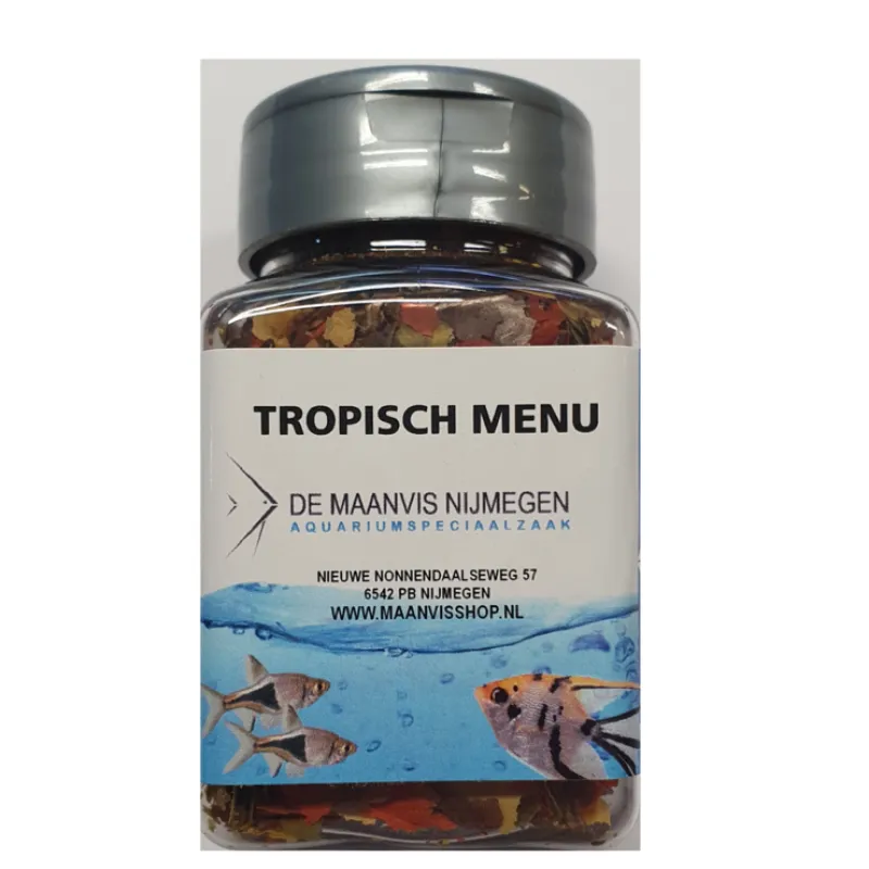 Tropisch Menu bestaande uit drijvende en zinkende voeders. Met rode muggenlarven voor extra eiwitten! Uitermate geschikt voor aquaria met verschillende soorten vissen.