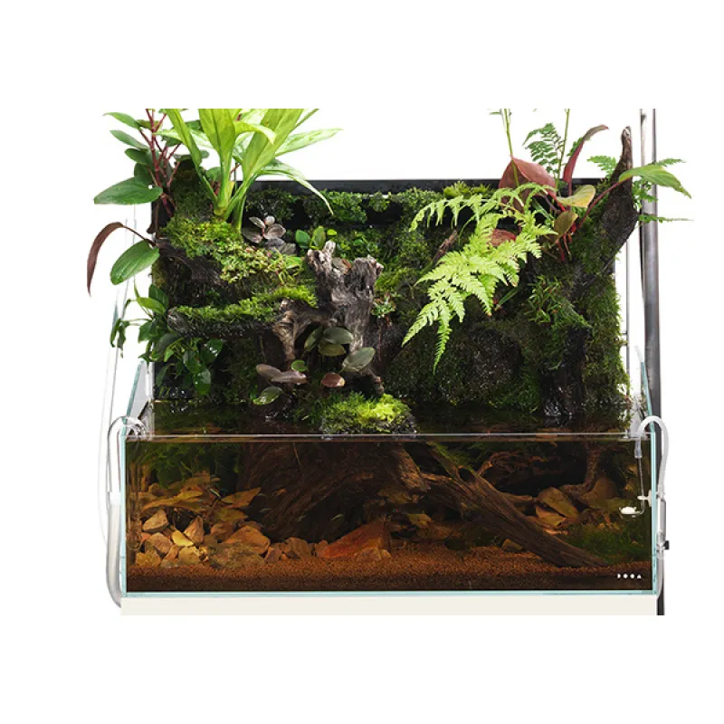 MIZUKUSA MIST WALL 60 is een beplant aquariumkweeksysteem waarmee u met behulp van ADA's unieke Wabikusa matten kunt genieten van een natuurlijk tafereel met een opgaande muur van bladeren van uw waterplanten of bijvoorbeeld kleine bromelia's.
