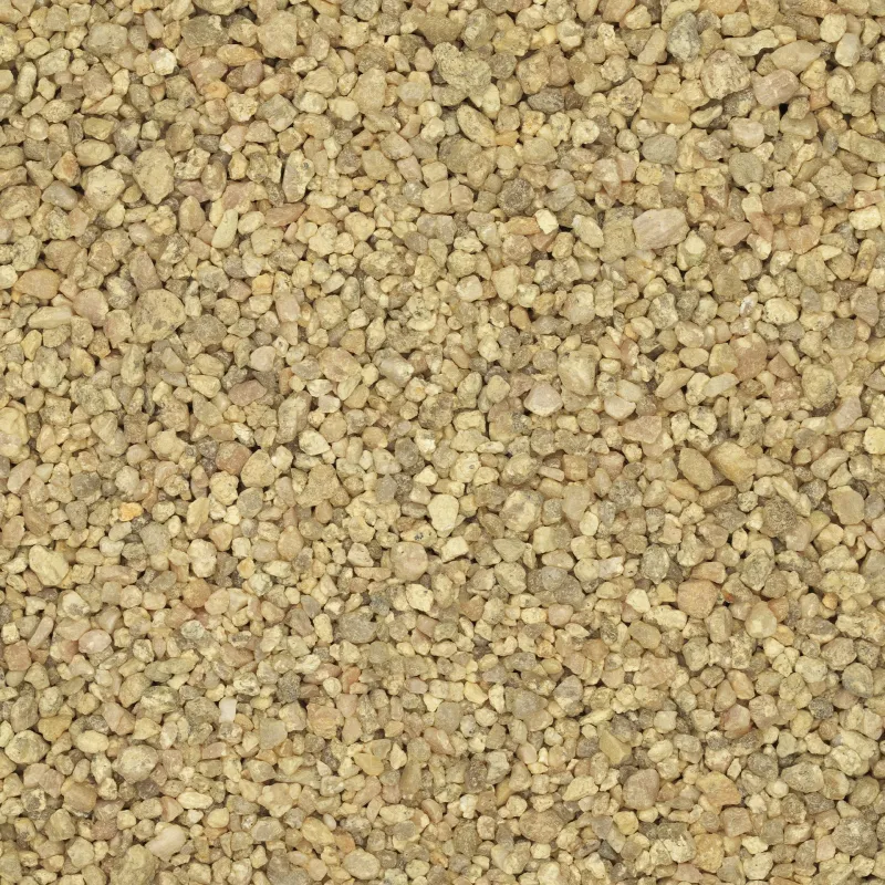 Natuurlijk zand met een rivier-oeversfeer. Iets grotere korrels zorgen ervoor dat bezonken sediment minder opvallend is. Hierdoor oogt het minder snel vervuild dan fijnere zand korrels.