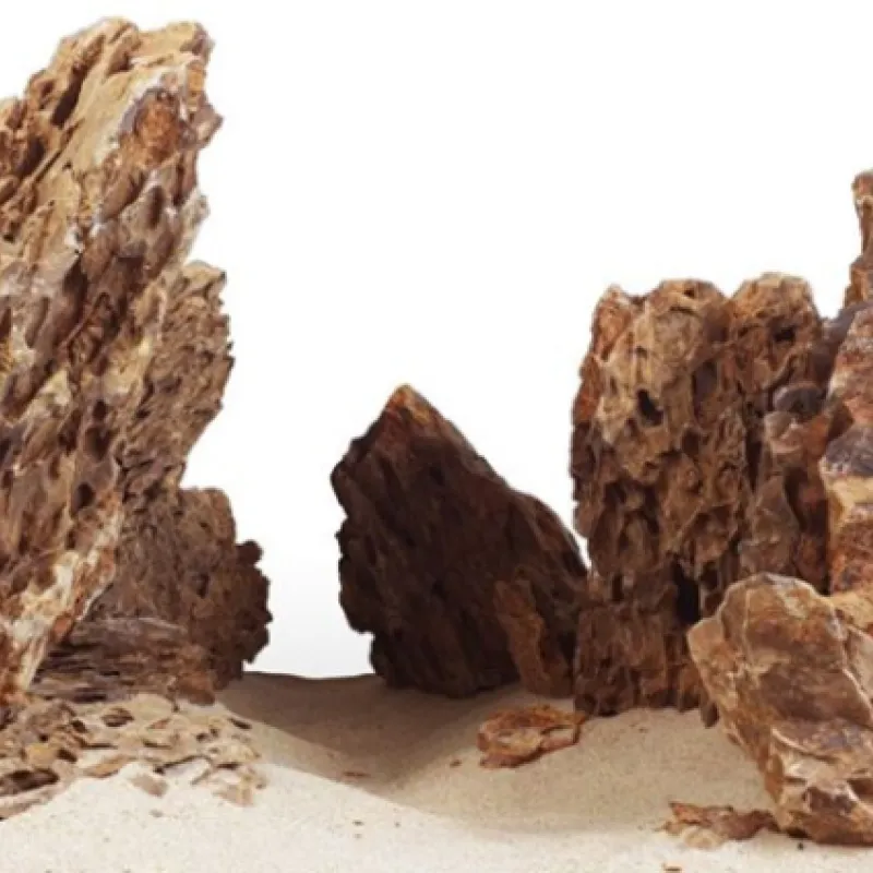 Drakensteen, ookwel bekend als OHKO stone, is een veel gebruikte steensoort in diverse aquariuminrichtingen. Door de gevarieerde structuur met de vele gaten en lijnen geeft het een speels effect in de inrichting. Draken steen heeft geen invloed op de waterwaardes. Het is een vrij zachte steen die eventueel makkelijk te splitsen is met een hamer en beitel, gebruik hierbij wel altijd goede bescherming!