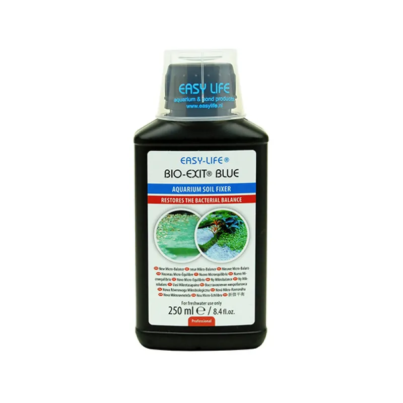 Bio-Exit Blue is onschadelijk voor vissen, garnalen en planten. Bevat geen erythromycine of koper.