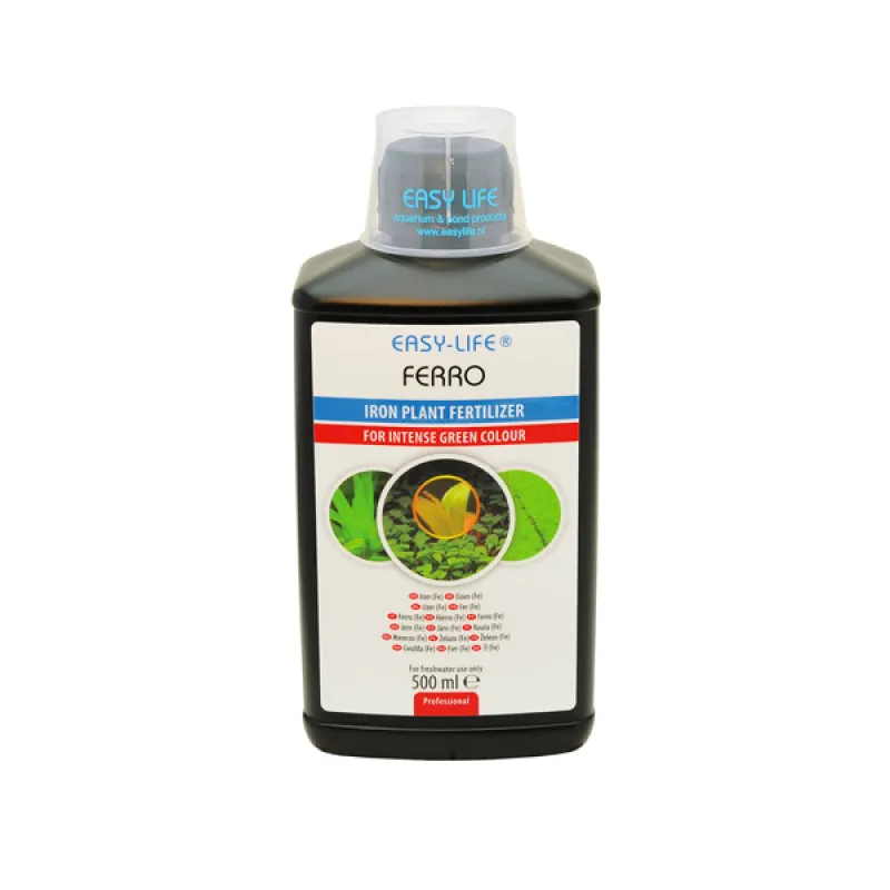Easy-Life Ferro bevat gemakkelijk opneembaar ijzer voor waterplanten. IJzer is onmisbaar voor een goede opbouw van plantenbladeren. Het zorgt voor de “groene kleur” van het blad door de aanmaak van bladgroen.