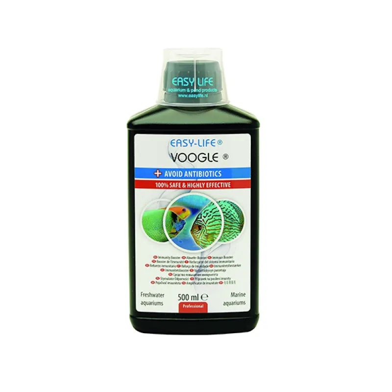 Voogle heeft een stimulerende werking op alle vissen, garnalen en kreeften. Het is verder absoluut onschadelijk voor slakken, planten of het biofilter. Het product heeft verder geen invloed op de belangrijke waterparameters zoals de pH, KH of GH. Voogle wordt verder op een natuurlijke wijze afgebroken, waardoor waterverversing na gebruik niet nodig is.
