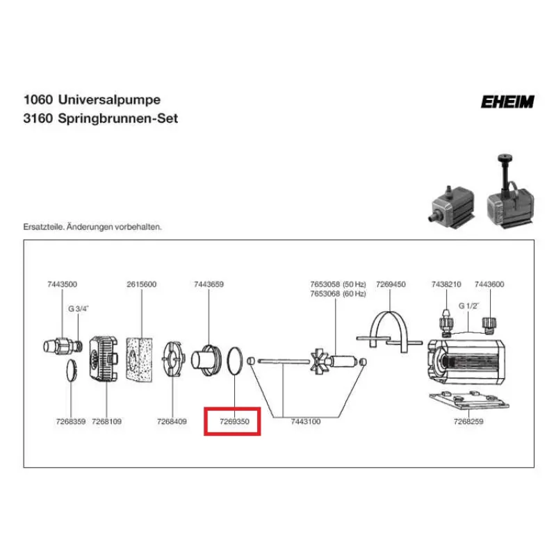 - Centrifugaalpompen type Eheim 1060, Eheim 2260, Eheim 3160 en Eheim 3460