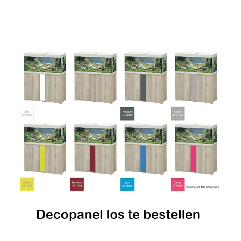 Alles is perfect afgestemd met dit "all-inclusive programma" bestaande uit een aquarium met EHEIM LED verlichting, kast, filter, verwarming en biologische filtermedia. Het enige wat u hoeft te doen is voor de vissen en planten zorgen. Bovendien kan de EHEIM vivaline LED-serie perfect worden afgestemd op uw inrichting, omdat het nieuwe decorbord uitwisselbaar is. Dit maakt uw nieuwe aquarium net zo individueel als u zelf bent. De verwisselbare sierplaat wordt standaard geleverd in de drie onderkastkleuren antraciet, eiken grijs en wit.