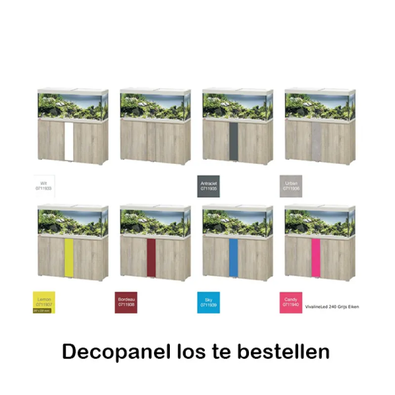 Alles is perfect afgestemd met dit "all-inclusive programma" bestaande uit een aquarium met EHEIM LED verlichting, kast, filter, verwarming en biologische filtermedia. Het enige wat u hoeft te doen is voor de vissen en planten zorgen. Bovendien kan de EHEIM vivaline LED-serie perfect worden afgestemd op uw inrichting, omdat het nieuwe decorbord uitwisselbaar is. Dit maakt uw nieuwe aquarium net zo individueel als u zelf bent. De verwisselbare sierplaat wordt standaard geleverd in de drie onderkastkleuren antraciet, eiken grijs en wit.