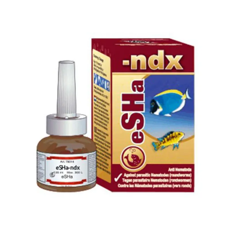 eSHa ndx is een antihelminticum voor siervissen in zoet- en zeewater. Het werkt tegen parasitaire Nematoden