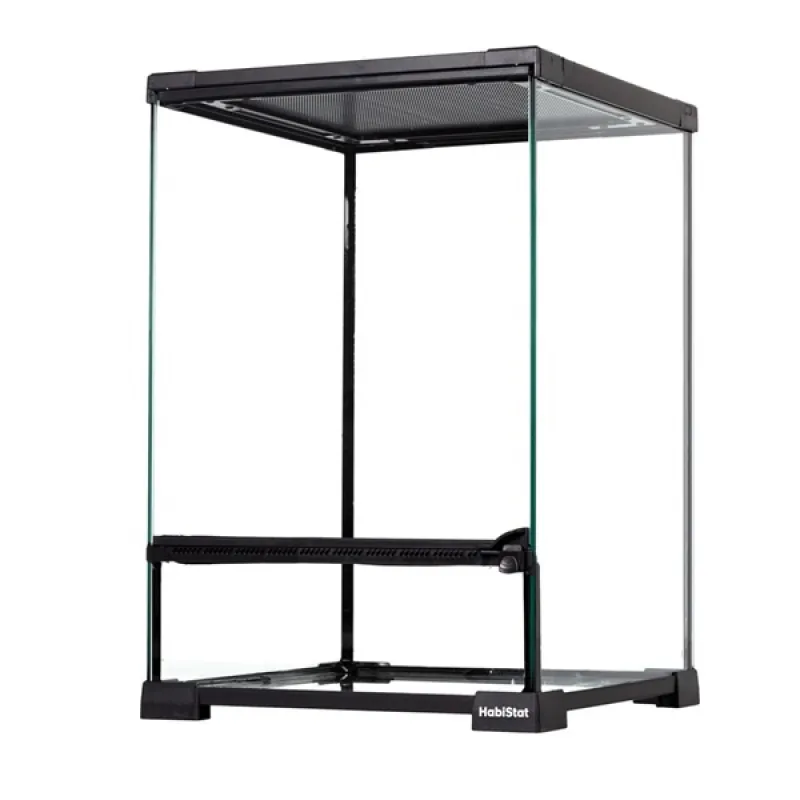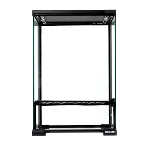 Het kiezen van een huis voor uw reptiel, amfibie of geleedpotige is een belangrijke beslissing. Na tientallen jaren bestuderen van reptielen en hun leefomgeving zijn HabiStat's glazen terrariums gebouwd om lang mee te gaan en de ideale leefomgeving te bieden. Habistat zwarte design tanks zullen een geweldig middelpunt in uw huis zijn en met muur tot muur glas zal een ononderbroken zicht op uw dier bieden. Verduisterde zijkanten zorgen voor veiligheid en privacy voor uw dier. In de kleinere voorgebouwde tanks kan dit worden gerealiseerd via decor en planten. Volledig afgeschermde boven ventilatie laat UVB en infrarood door en is volledig verwijderbaar voor gemakkelijke toegang tijdens het decoreren of schoonmaken. Gemakkelijke toegang via de aan de voorzijde te openen deuren of de bovenkant van gaas voor onderhoud, voeding en decoratie. Een speciaal ontworpen slot voorkomt ontsnapping en de deuren kunnen afzonderlijk worden geopend. Perfect voor bioactieve opstellingen, de waterdichte bodem maakt een drainagelaag mogelijk. Installeer een HabiStat luchtbevochtiger of regensysteem via de veilige toegang in de speciale opening op het deksel.