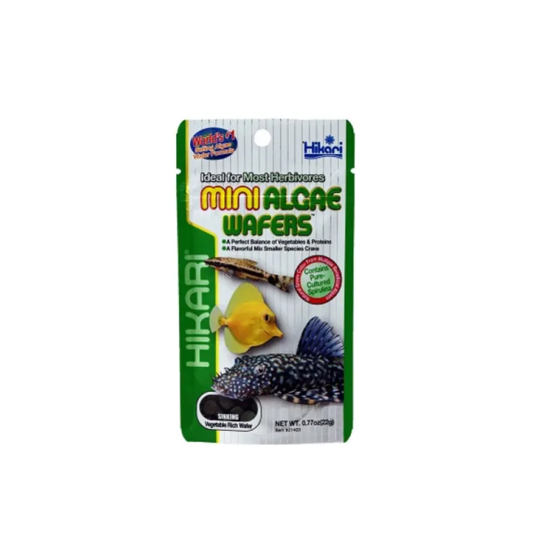Hikari Mini Algae Wafers is het meest gekocht voer in miniatuurversie voor kleinere algeneters zoals Otocinclus. Hikari heeft dit succesvolle voer nu nog beter gemaakt. De nieuwe formule bevat nog meer plantaardige ingrediënten, waaronder meerdere algensoorten zoals spirulina en chorella. De Hikari Mini Algae Wafers lossen niet snel op, wat heel belangrijk is voor nachtelijke eters zoals Plecostomus, die geen vast eetpatroon kennen.