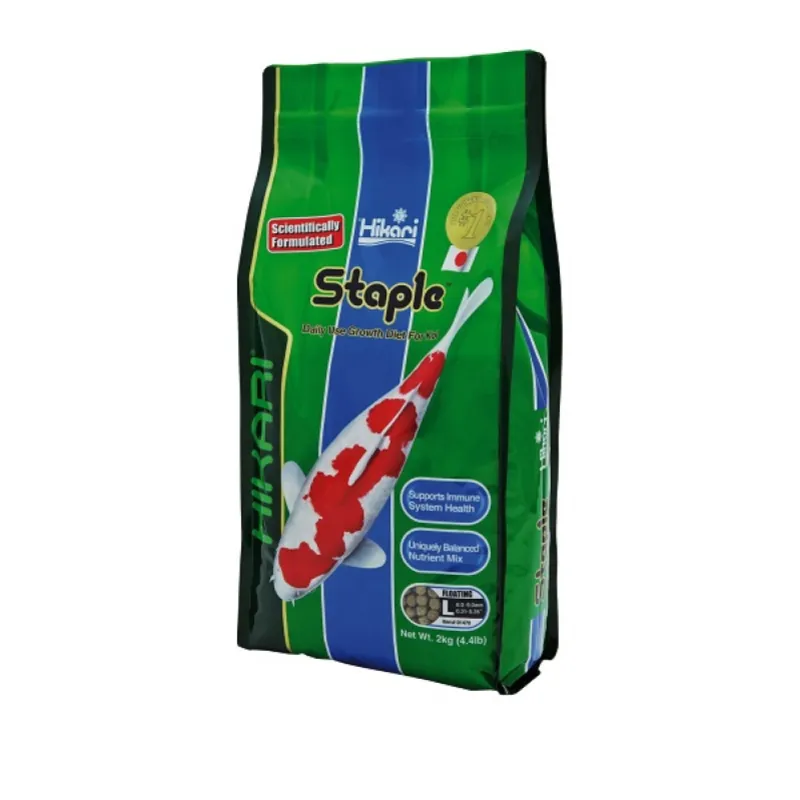 Hikari Staple is een dagelijks basisvoer voor Koi en andere vijvervissen. De unieke balans van de ingrediënten zorgt voor een uitstekende groei en ondersteuning van het immuunsysteem. Hikari Staple is al jarenlang een bewezen kwaliteit. De uitgebalanceerde ingrediënten zorgen voor een snelle groei, juiste lichaamsbouw en een efficiënte vertering. De drijvende korrels vertroebelen het water niet en bevatten de noodzakelijke vitamines, waaronder gestabiliseerd vitamine C ter ondersteuning van het imuunsysteem.