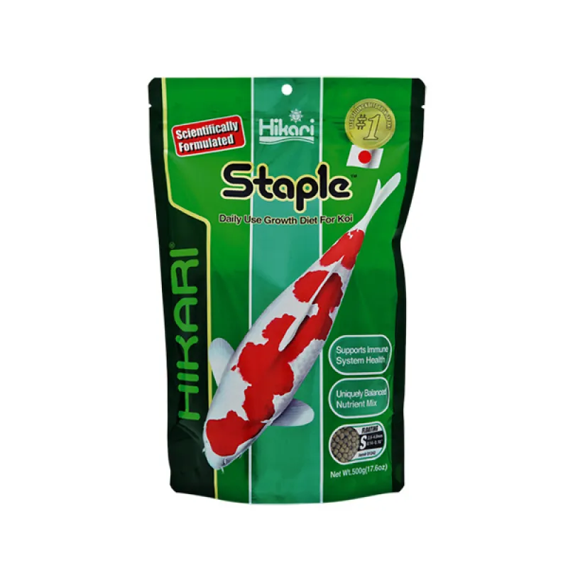 Hikari Staple is een dagelijks basisvoer voor Koi en andere vijvervissen. De unieke balans van de ingrediënten zorgt voor een uitstekende groei en ondersteuning van het immuunsysteem. Hikari Staple is al jarenlang een bewezen kwaliteit. De uitgebalanceerde ingrediënten zorgen voor een snelle groei, juiste lichaamsbouw en een efficiënte vertering. De drijvende korrels vertroebelen het water niet en bevatten de noodzakelijke vitamines, waaronder gestabiliseerd vitamine C ter ondersteuning van het imuunsysteem.