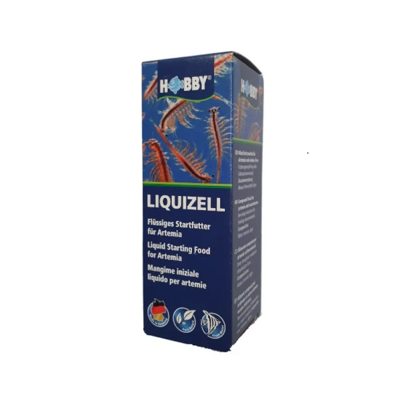 Vloeibaar startvoer voor artemia. Speciaalvoeder voor artemia en lagere dieren. Artemia kunnen de eerste dagen geen vast voedsel opnemen die groter zijn dan natuurlijk fytoplankton. Door het speciale productieprocess van hobby liquizell zijn de deeltjes klein genoeg om te kunnen worden opgenomen door de artemia naupliën. Het voeren van artemia kan vanaf de derde dag na het uitkomen van de eitjes. Let er op dat u niet teveel voert aangezien dan het water heel snel kan verslechteren en de kweek kan mislukken.