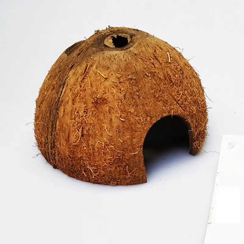 Halve kokosnoot formaat M voorzien van 1 gat zodat de vissen een extra schuiplaats hebben. Ideaal als natuurlijke broedplek voor kleinere cichliden of L-nummers.