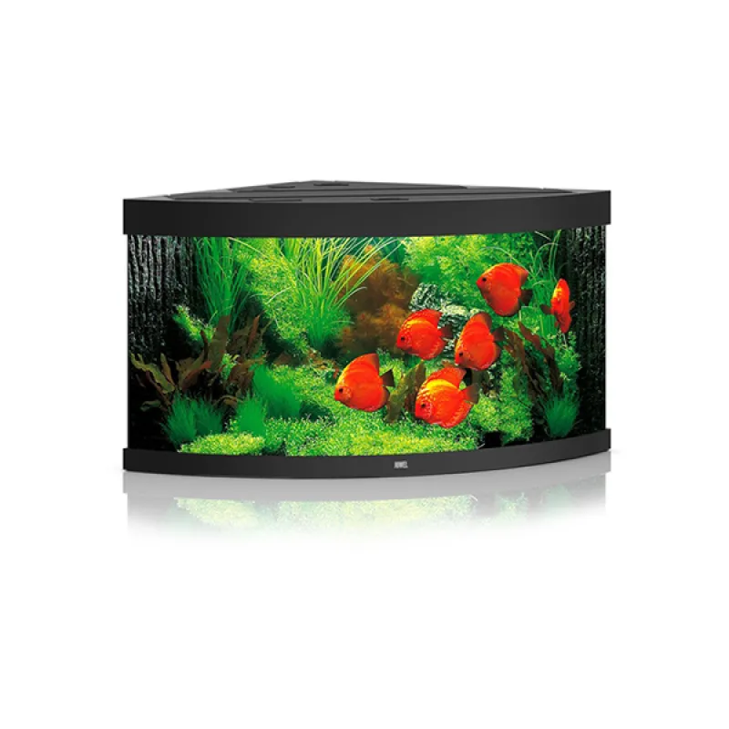 Het TRIGON 350-aquarium schittert in elke hoek met zijn unieke diepte van 87 cm en zijn gebogen voorruit en wordt optimaal verlicht door 4 LED-buizen.