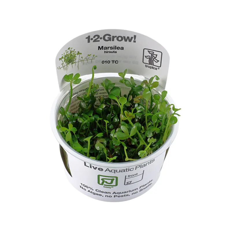 Marsilea hirsuta is een voorgrondsplantje die doormiddel van uitlopers zichzelf langzaam verspreid over de bodem.