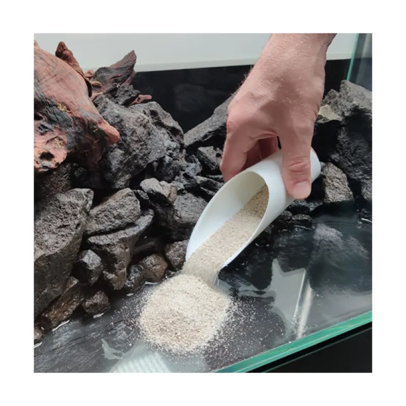 Handige schep om soil en andere bodemmaterialen makkelijk in de lastig bereikbare hoeken van uw aquarium te krijgen zonder te knoeien.