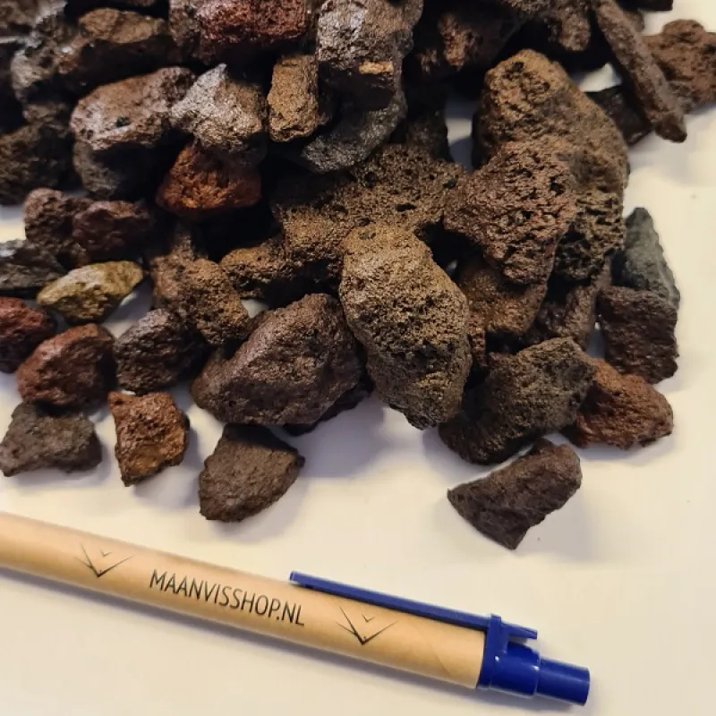 Deze brokjes rood-bruine lava zijn handig om bij het aquascapen als aanvulling op de grotere stenen of voor het maken van een scape in een nanoscape. De stenen zijn ca. 3 tot 5cm groot. Voor gebruik goed afspoelen.
