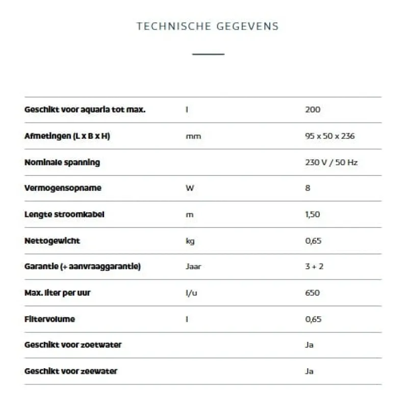 Het EcoFlow 200 interne filter reinigt het water in aquaria met een volume tot 200 liter. De geïntegreerde uitstroomnozzles zorgen voor een gelijkmatige oppervlaktebeweging en voldoende zuurstofverrijking. Zowel de stroomrichting als de stroomsnelheid kunnen individueel worden ingesteld. Onderhoud is kinderspel dankzij het filterkamerontwerp met vuilvanger en geïntegreerde magneten. De organische stoffen blijven in de filterkamer en komen niet terug in het aquarium. Zowel de afzonderlijke kamers als het hele filter kunnen worden verwijderd. De maximale doorstroomsnelheid is 650 liter per uur.