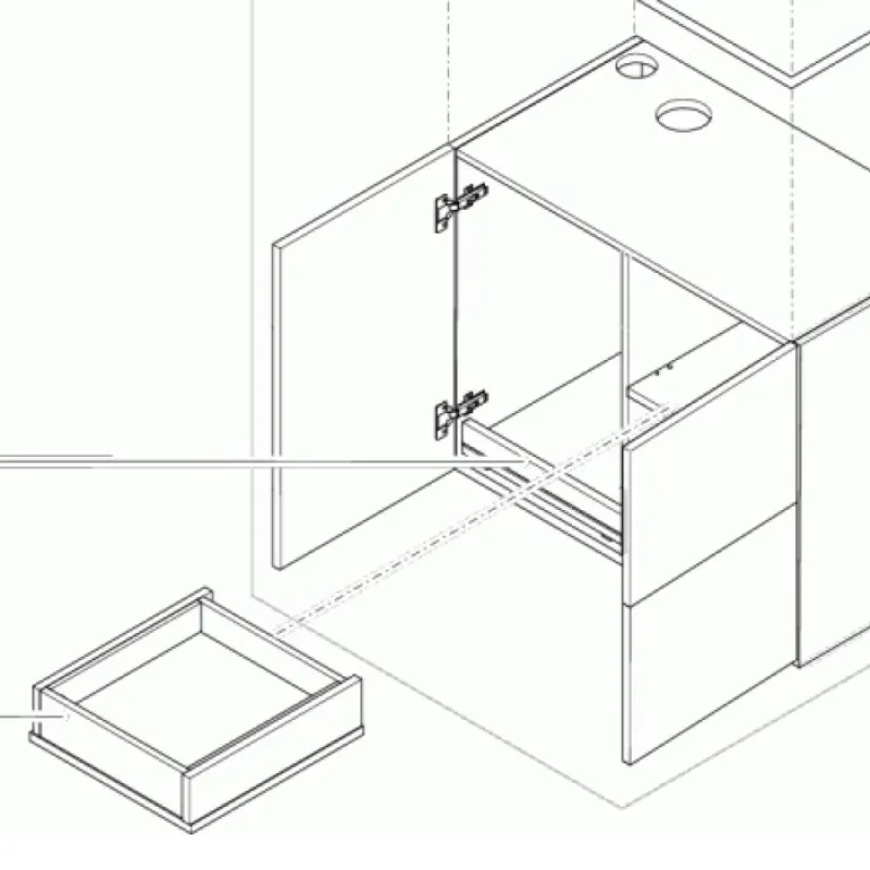 Afemting 36x40cm (bxd) wordt geleverd inclusief rails.