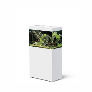 Complete set bestaande uit aquarium met onderkast met veel opbergruimte, filtereenheid en LED-verlichtingsset. Zuiver, tijdloos design en geavanceerde techniek: Alles voor een functioneeel, onderhoudsvriendelijk ecosysteem. Optimale prijs-kwaliteitsverhouding – ideaal voor beginnende aquariumhouders. De waterpsiegel en kiezelrandafdekking is gefolied en plaatst de aquariumbewoners en planten in een stijlvol kader. Complete set bestaande uit aquarium met meubel, binnenfilterunit en LED-verlichtingsset.