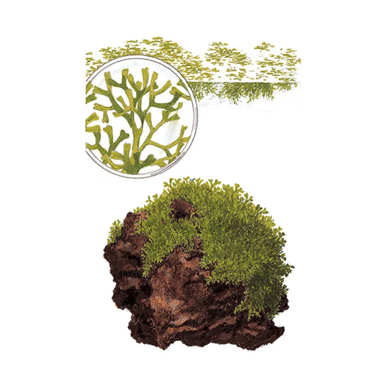 Riccia fluitans - watervokje is een drijfplantje die ook o.a. door Takashi Amano veel onderwater gebruikt wordt. Onderwater wordt het vaak vastgebonden met bijvoorbeeld ADA Riccia line op kleine steentjes of hout.