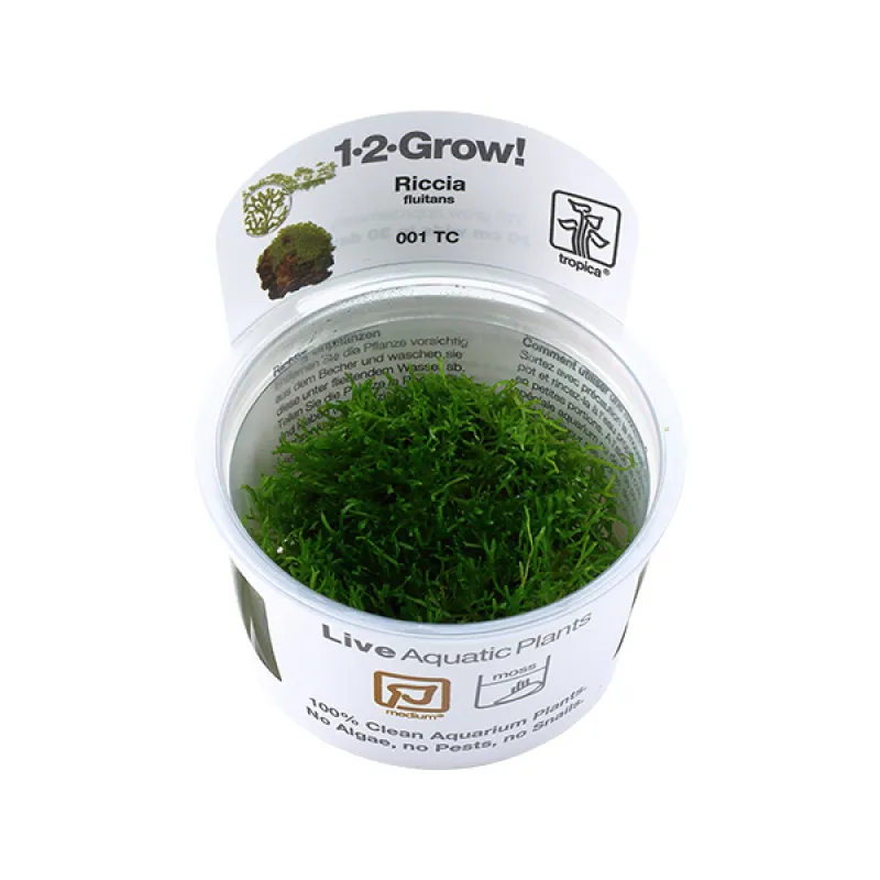 Riccia fluitans - watervokje is een drijfplantje die ook o.a. door Takashi Amano veel onderwater gebruikt wordt. Onderwater wordt het vaak vastgebonden met bijvoorbeeld ADA Riccia line op kleine steentjes of hout.