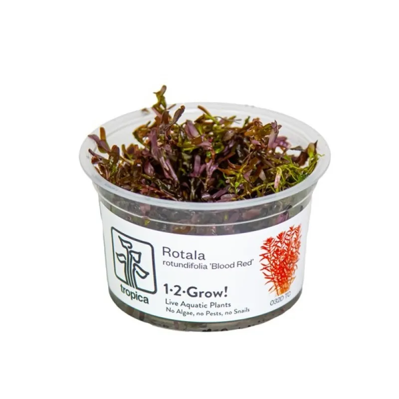 Rotala rotundifolia blood red is een tere, enigszins moeilijk houdbare rode plant. Ze hebben een zeer hoge behoefte aan CO2 en licht, het voedingsaanbod waaronder voldoende ijzer moet ook goed gedoseerd worden. Ze lijken veel op Rotala sp. H'ra maar hebben een nog intensere kleur.