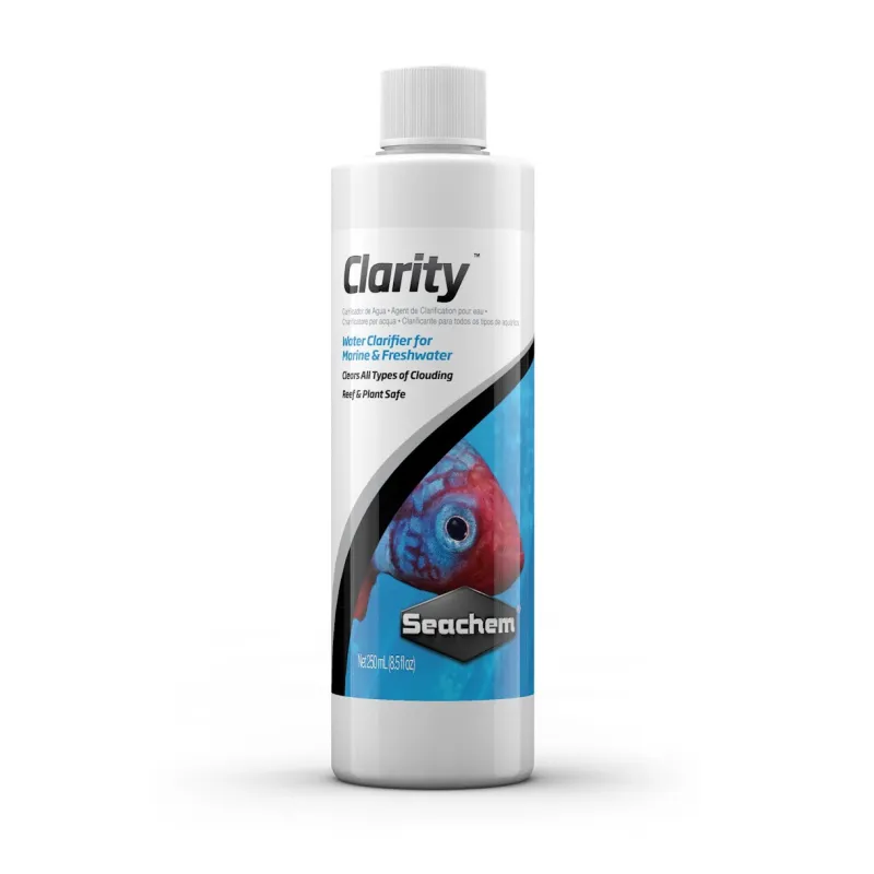Seachem Clarity™ is het ultime middel om water helder te krijgen. Clarity™ maakt gebruik van geavanceerde vlokvormende polymeren die werkzaam zijn in zowel zoet- als zoutwater. Clarity™ is de enige op de markt die alle vertroebelingen kan ophelderen.
