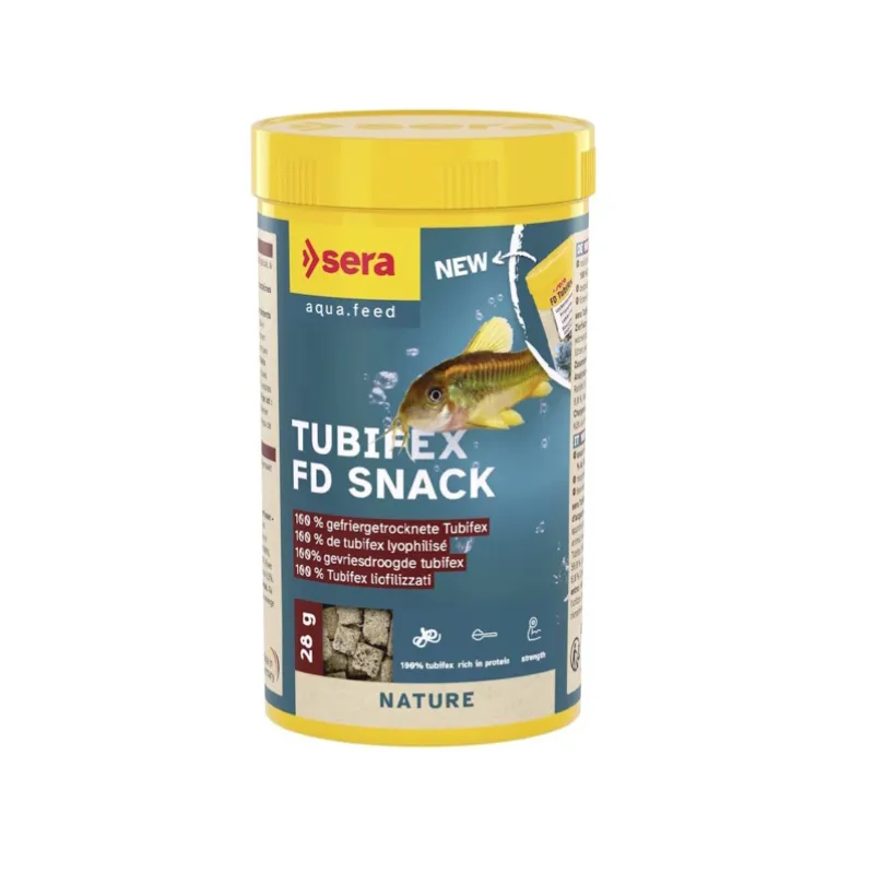 sera FD Tubifex is het natuurlijke tussendoortje uit 100% tubifex. Tubifex behoort tot het normale voedingsspectrum van allerlei, voornamelijk vleesetende vissoorten.