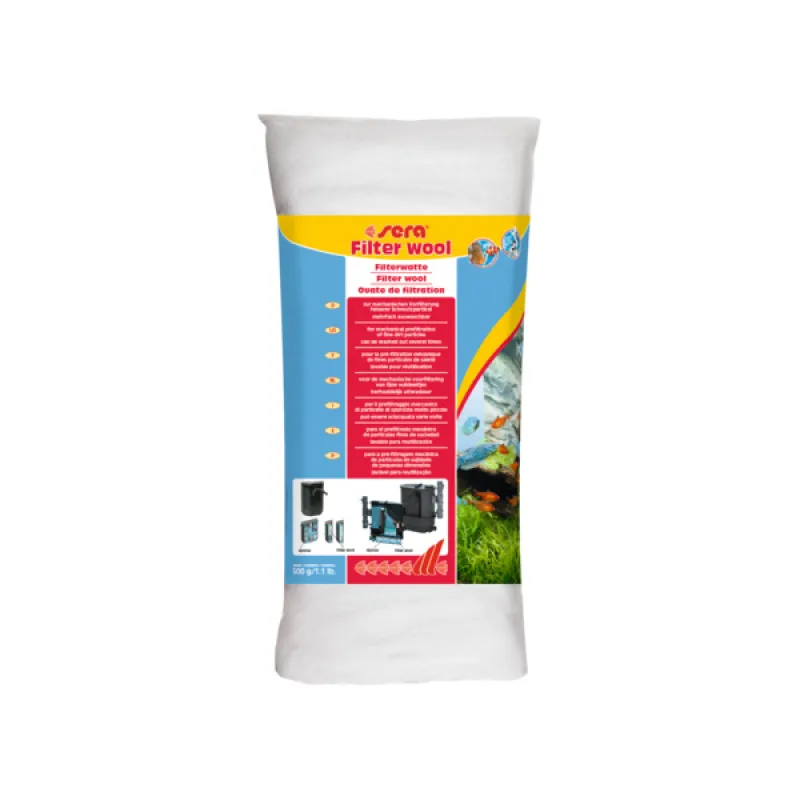Sera filterwatten voor de mechanische filtering bestaan uit stabiele vezels die de fijnere vuildeeltjes over een langere periode tegenhouden zonder vast te plakken of in te zakken. Sera watten kunnen worden uitgewassen. Geschikt voor vrijwel alle filters.