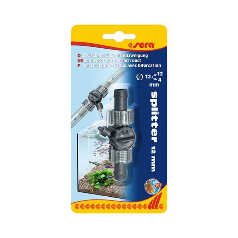 De sera splitter is ideaal geschikt, om bijvoorbeeld drijvende (op)kweekbakjes, kleine aquariua of kleine filters met water te verzorgen.