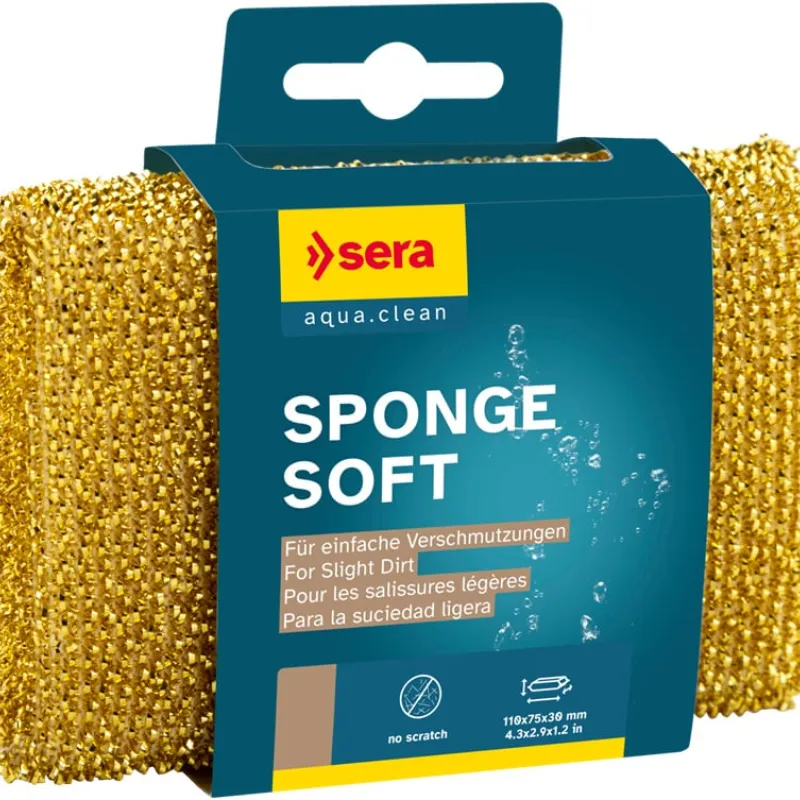 In en rond het aquarium kan steeds weer lelijke vervuiling ontstaan, wat geen probleem is voor de dierbewoners, maar wel vervelend voor de aquariaan. Vooral tijdens de inloopfase is groene aanslag op de ruiten een ongewenst neveneffect. Watervlekken en lichte kalkaanslag zijn ook een vervelend probleem, vooral in open aquariums. De Sponge Soft is precies ontworpen voor dit soort vervuiling. De spons is bedekt met een lurex oppervlak en reinigt de ruiten zonder krassen op het glas te maken. Het aquarium kan met weinig druk snel en eenvoudig tot in de hoeken worden gereinigd. De rangschikking van de lurex-vezels is gebaseerd op een natuurlijk model: de radula (ook wel “rasptong” genoemd), die de meeste weekdieren hebben. Deze dient als tandvervanger voor het raspen en kauwen van voedsel. Slakken gebruiken dit mondgereedschap om de algengroei op schijven en meubilair af te grazen.
