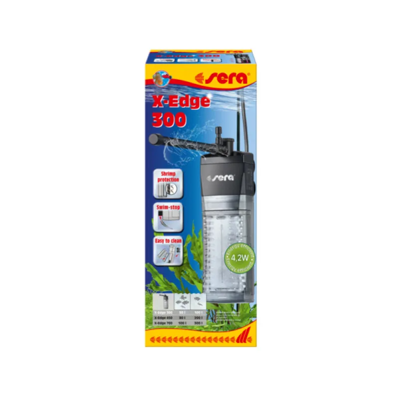 Natuurlijk werd – zoals bij alle filters van sera – ook bij de constructie van de sera X-Edge hoekfilter rekening gehouden met het veiligheidsaspect. Hoekfilters kunnen namelijk voor vissen en garnalen gevaarlijk zijn. Daarom moeten twee bereiken in acht genomen worden. Enerzijds zwemmen vissen af en toe achter de hoekfilter en lopen ze het risico daar vast te komen te zitten. Om deze reden is de "Swim-stop" geïntegreerd, die voorkomt dat de vissen achter de hoekfilter zwemmen. Aan de andere kant kruipen vooral jonge garnalen vaak door de filtermedia naar het binnenste van de filter – dit kan natuurlijk gevaarlijk zijn voor de dieren. Om dit te voorkomen werden nauwkeurig passende filtermedia gebruikt.