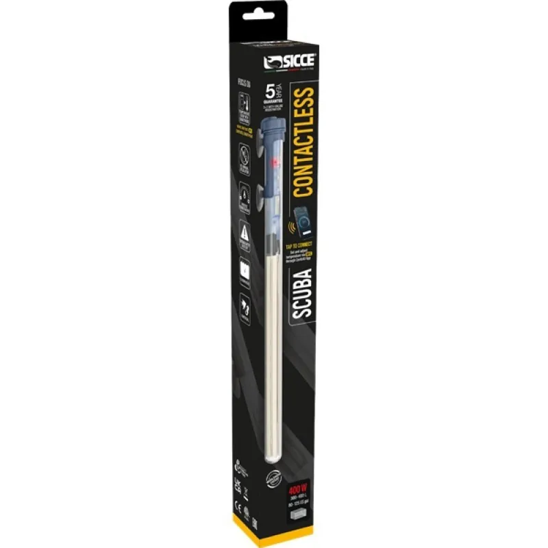 De Sicce Scuba CTL heaters zijn een van de meest innovatieve aquarium verwarmingen op de markt. Uitgerust met de gepatenteerde "contactloze" electronische instelling zorgt de Sicce Scuba CTL voor een eenvoudige maar zeer nauwkeurige temperatuurregeling van uw aquarium. Via de gratis te downloaden app en de NFC-chip van uw telefoon programmeerd u de gewenste temperatuur eenvoudig. Door het gebruik van de energiebesparingsmodus wordt de temperatuur nauwkeuriger geregeld en wordt er zelfs minder stroom verbruikt. Het glas is gehard en extra stevig voor een lange levensduur.
