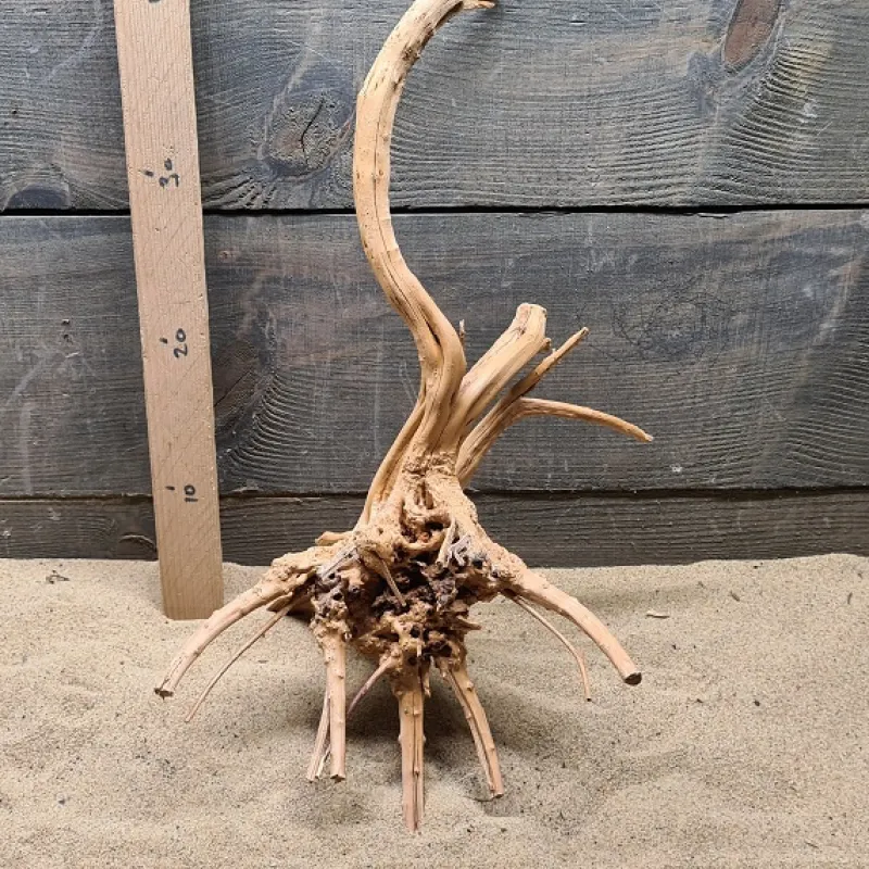 Slimwood is vergelijkbaar met spiderwood maar met wat rechtere vertakkingen. Elk stuk is uniek en het stuk op de foto is ook het stuk dat u ontvangt. Voor gebruik is het verstandig om het hout in te wateren zodat het al zal zinken tijdens het scapen.