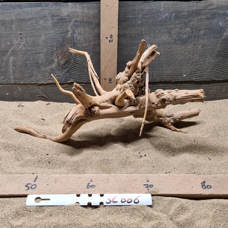 Slimwood is vergelijkbaar met spiderwood maar met wat rechtere vertakkingen. Elk stuk is uniek en het stuk op de foto is ook het stuk dat u ontvangt. Voor gebruik is het verstandig om het hout in te wateren zodat het al zal zinken tijdens het scapen.