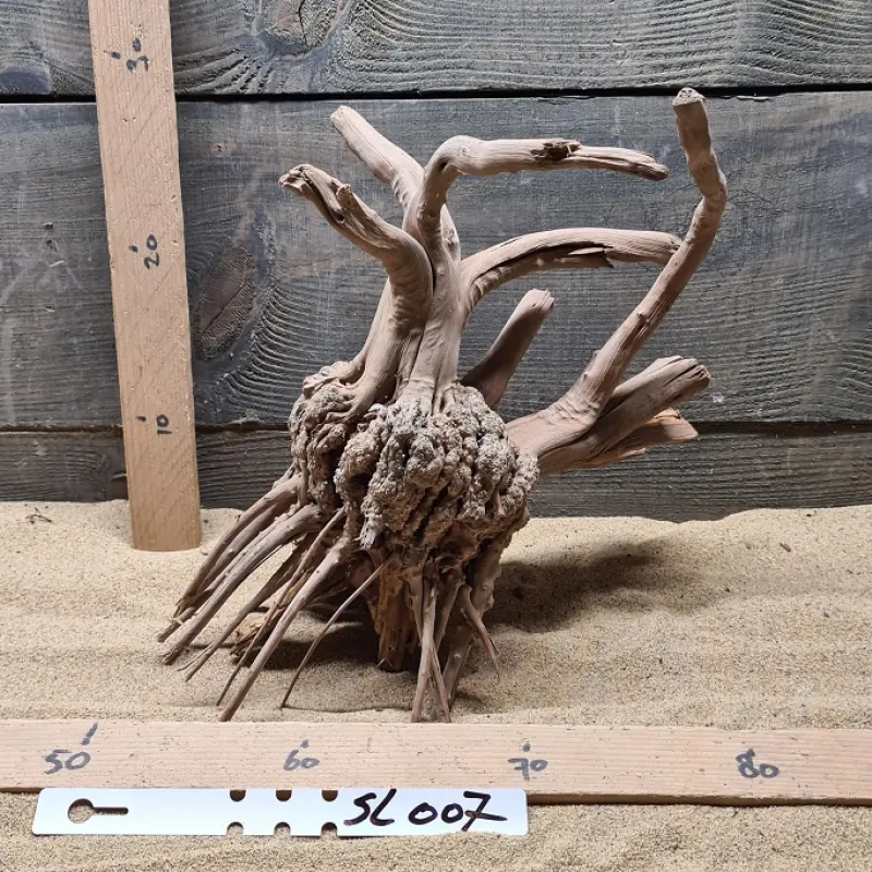 Slimwood is vergelijkbaar met spiderwood maar met wat rechtere vertakkingen. Elk stuk is uniek en het stuk op de foto is ook het stuk dat u ontvangt. Voor gebruik is het verstandig om het hout in te wateren zodat het al zal zinken tijdens het scapen.